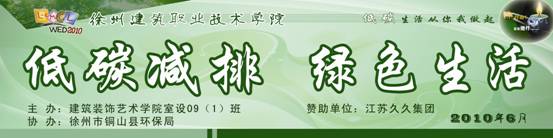 活动中我们班同学积极主动地向过往的同学们宣传世界环保日,并分发自制环保袋、传单,让尽可能多的同学了解到现在世界大环境的现状,提醒他们珍惜身边的每一寸绿色,并带动周边的人,同时使他们了解到低碳减排小常识,同时我们也组织了签名活动,每一个爱惜环境倡导绿色的人都在横幅上签下了自己的名字,同学们对我们的活动赞叹不绝。通过此次活动,我们让更多的人了解到了低碳生活,同时让我们班的每一位同学感染这种珍惜,带动身边每一个同学共同保护环境践行绿色。