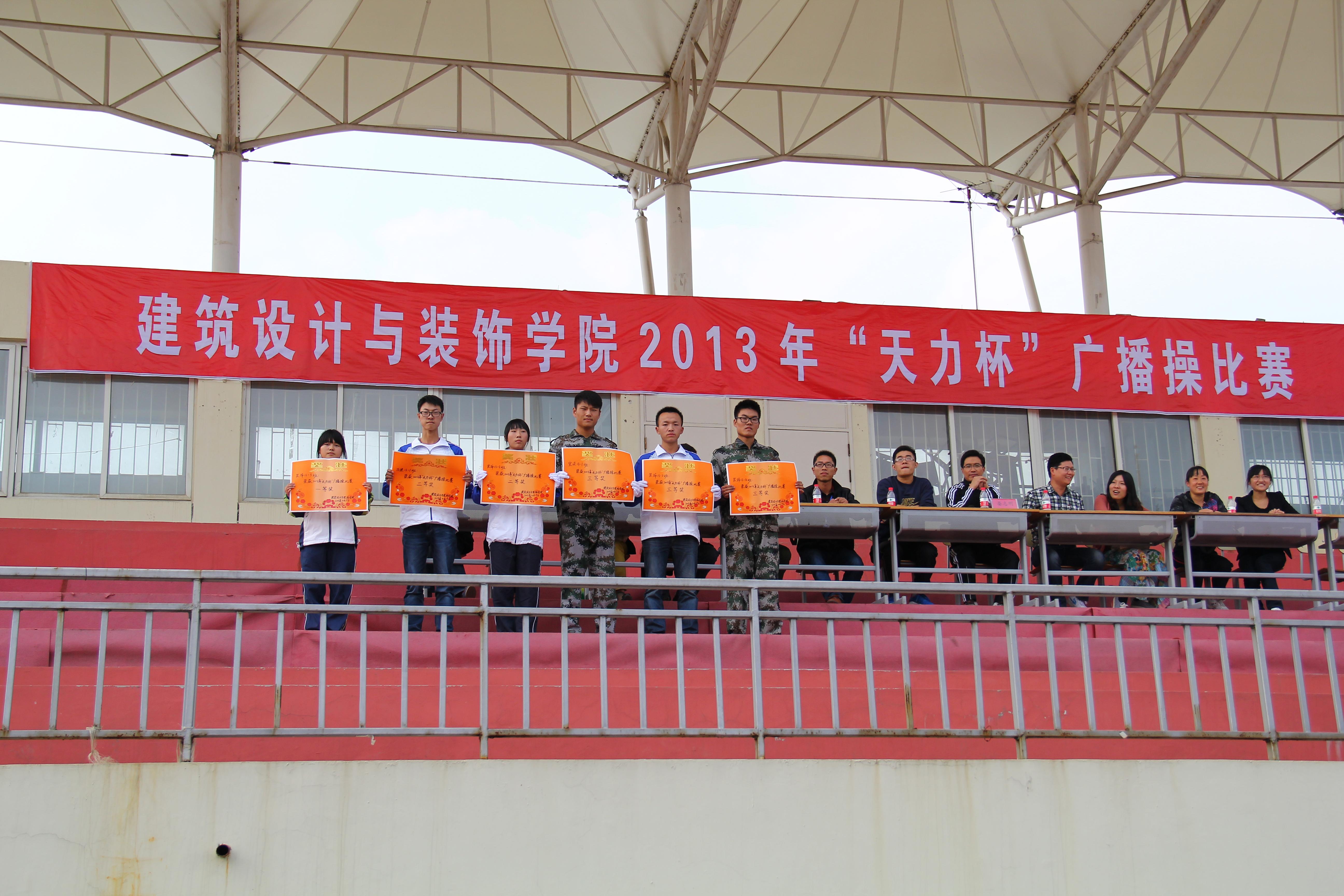为了迎接公司二十九届运动会的召开,为了提高员工参加体育锻炼的积极性,培养老员工良好的行为习惯,展示老员工的良好精神风貌,10月19日,建筑设计与装饰公司在新校区西田径场举行了2013年“天力杯”广播操比赛,全院16个新生班级600余名员工组队参加了激烈角逐。
