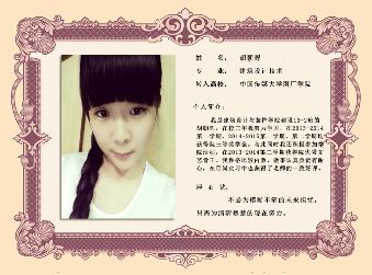 | 6 | 姚婷 | 室设13-2 | 中国传媒大学南广公司 | 视觉传达设计 |