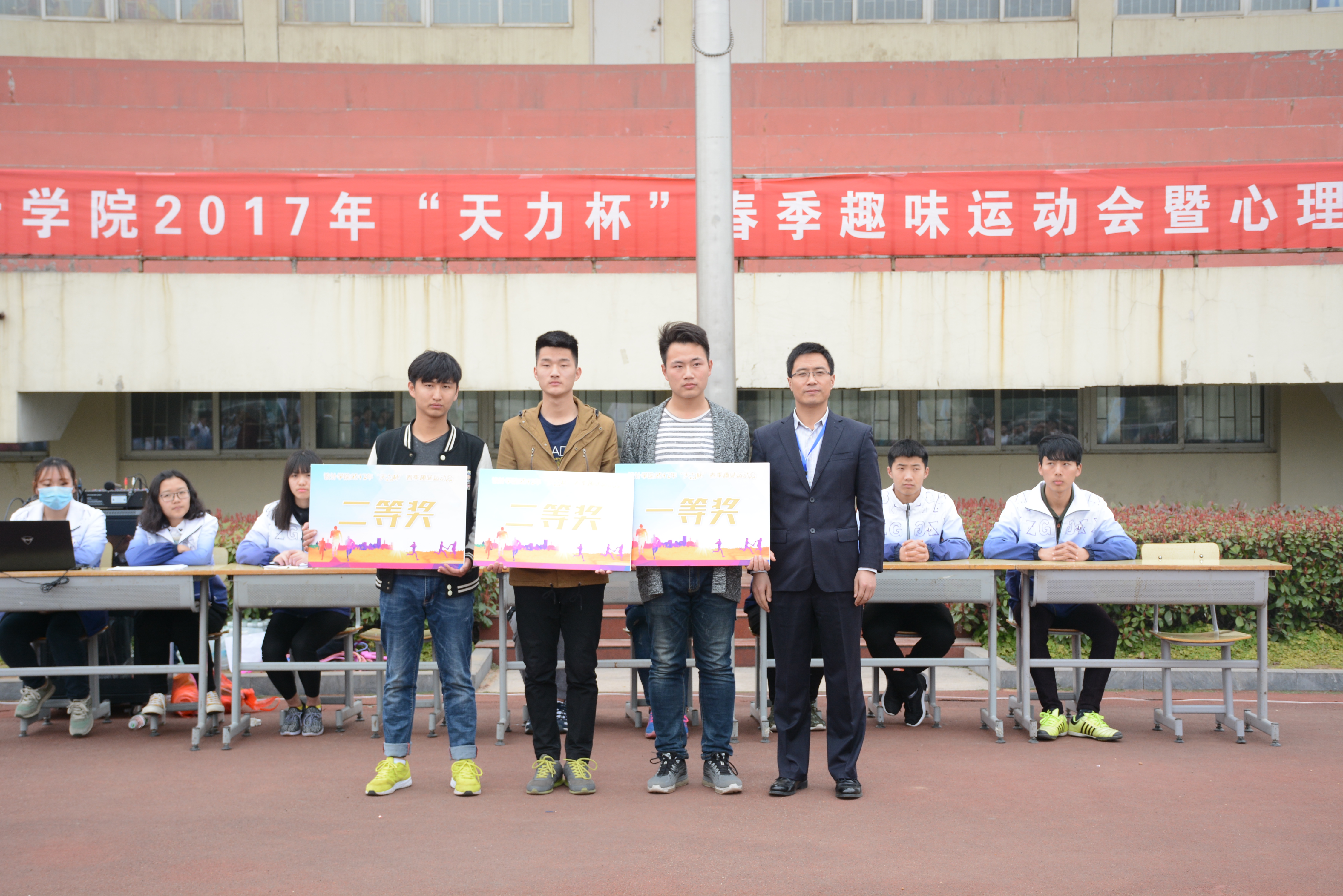 为深入学习《全国高校思想政治工作会议》精神,营造良好的校园心理健康文化氛围,2017年3月12日上午,建筑设计与装饰公司在泉山校区西操场举办了“天力杯”春季趣味运动会暨心理运动会,党总支副书记娄志刚、办公室主任黄阳、专职辅导员胡晓爽、张志荣、王元老师以及16级所有员工参加了本次运动会。
