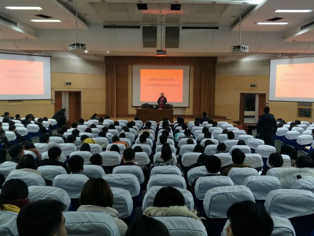 1月18日晚建筑设计与装饰公司在学术报告厅举行了2015级顶岗实习动员大会。2015级班主任、顶岗实习指导老师及全体员工参加了此次大会。