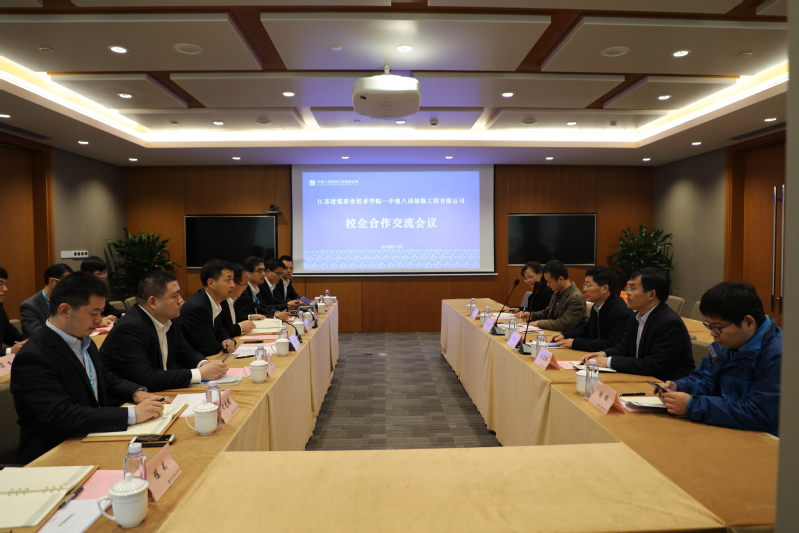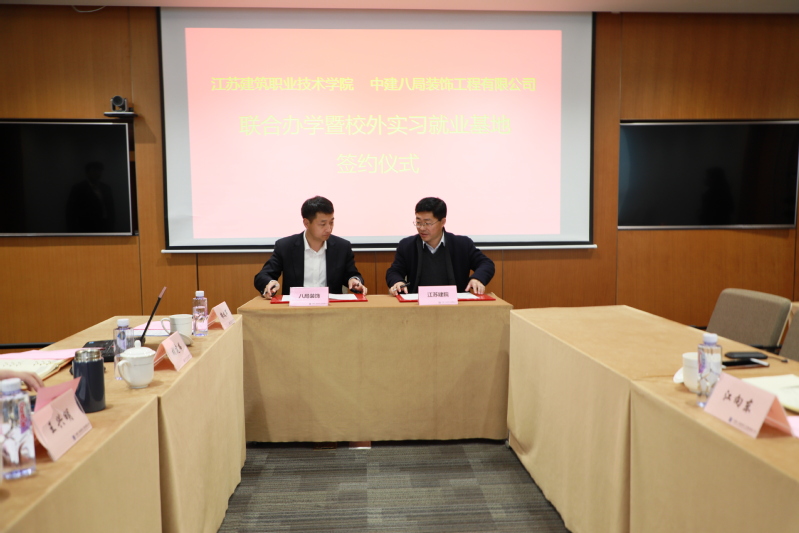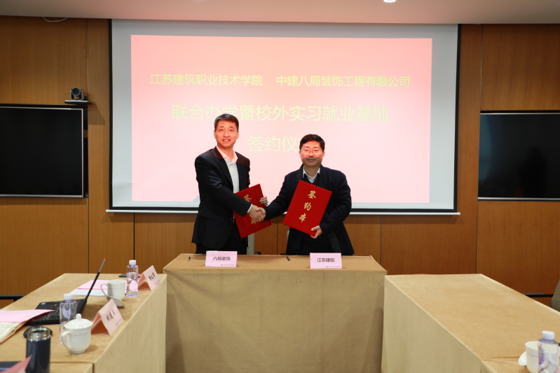 11月14日,公司与中建八局装饰公司在上海举行产学研合作基地签字仪式,校领导沈士德经理、公司党总支书记陈宏振、bv1946伟德官网经理陈志东、bv1946伟德官网副经理江向东、建筑装饰工程技术专业主任张鹏,中建八局装饰公司党委书记、董事长兼总经理孙士东、党委副书记兼纪委书记鲁长春、副总经理周亮等公司领导班子成员、中建八局装饰公司各职能部门负责人出席了签字仪式。