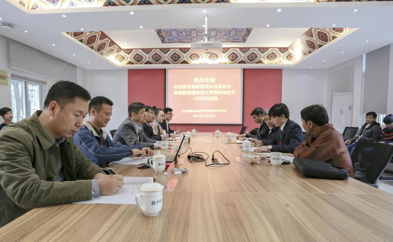 10月18日,老挝教育部职教司本亚里处长、柬埔寨管理经济大学菲科迪董事长一行四人来公司访问。校领导曾凡远副经理、国际交流公司王静副经理、公司党政领导在公司会议室共同接待了来宾并进行了友好交谈。