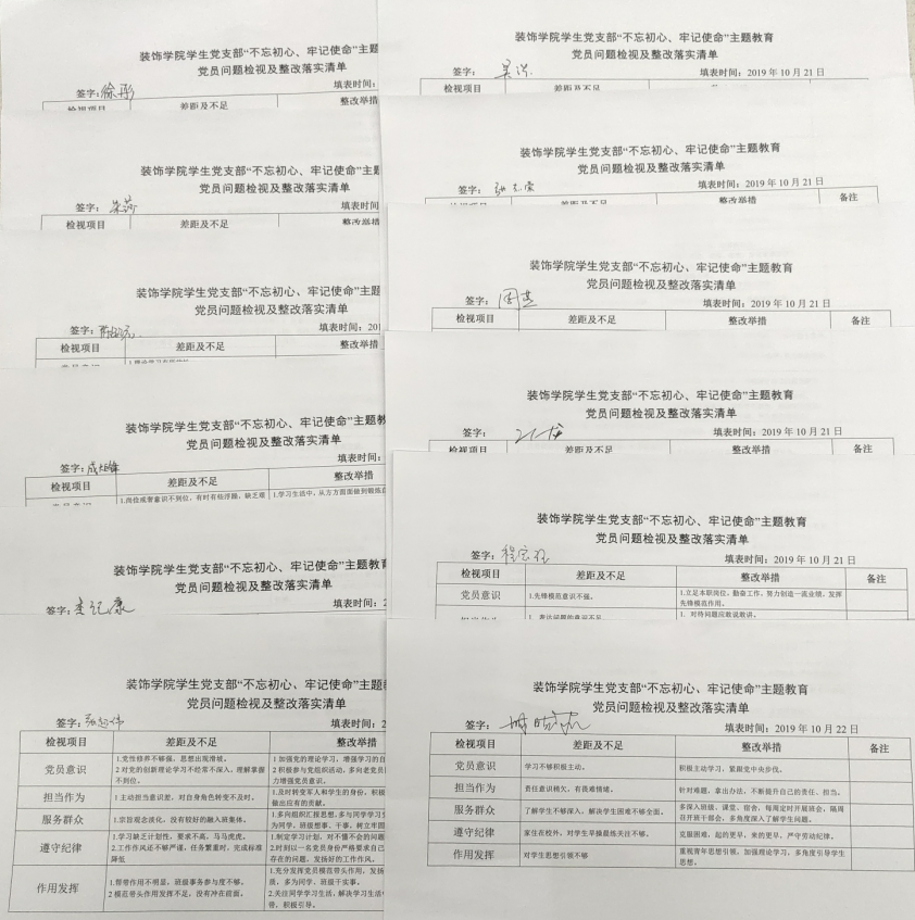 支部党员还结合岗位特点、工作职责,以实际行动践行“党员亮身份、服务亮承诺、工作亮标准、担当亮作为”的主题教育要求。以“党徽着身”“党员宿舍挂牌”亮身份,以“问题检视整改”“党员示范岗”亮承诺,以“志愿服务”“党员联系宿舍”亮标准、亮作为,结合教育培训和学习工作实践,将“不忘初心、牢记使命”主题教育不断引向深入。