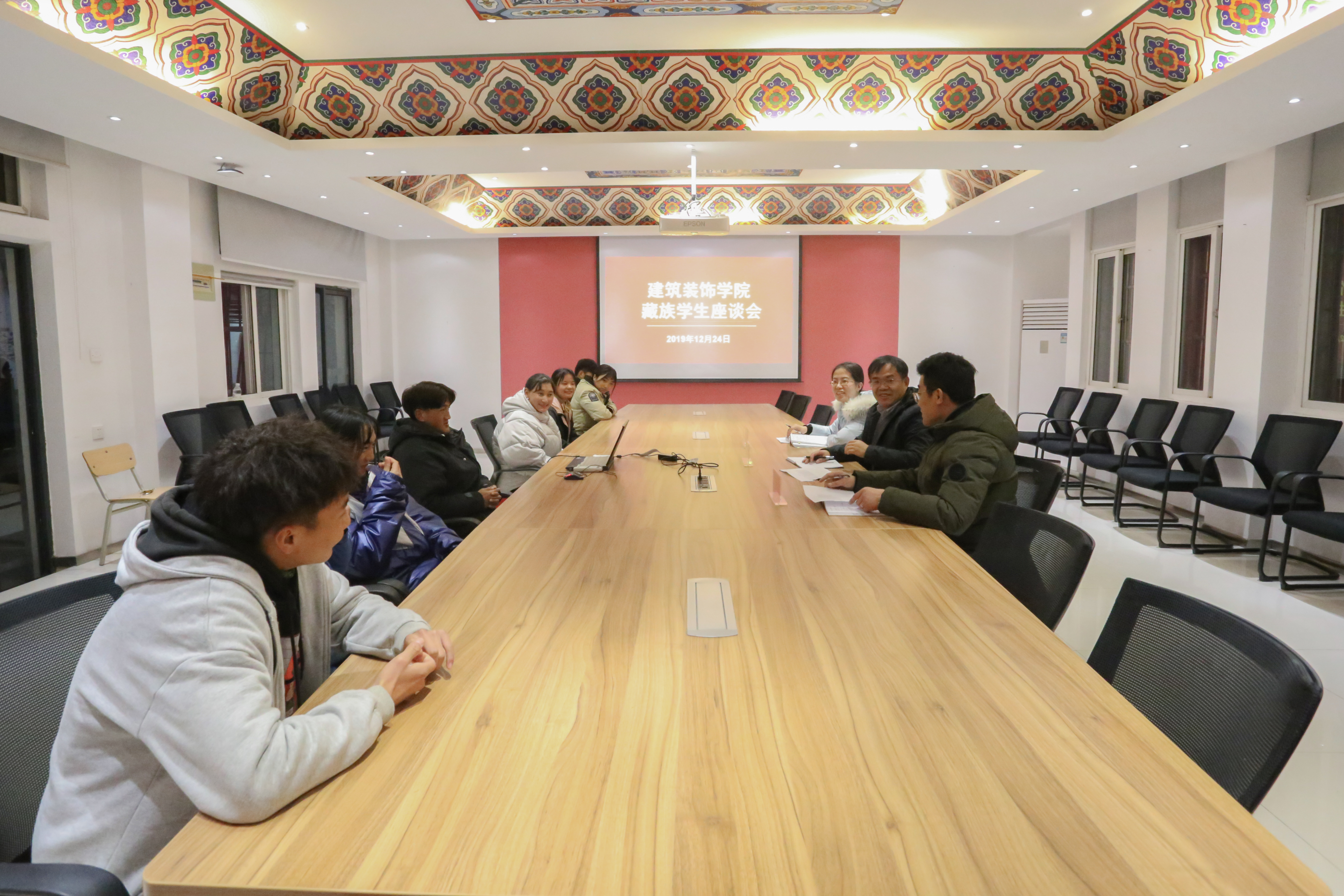 为全面了解公司藏族员工学业情况,更好地帮助他们解决学习、生活等方面存在的问题和困难,公司于12月24日召开了藏族员工座谈会,党总支书记陈宏振、副书记李彦江、辅导员程宝珏以及8名藏族员工参加座谈交流。