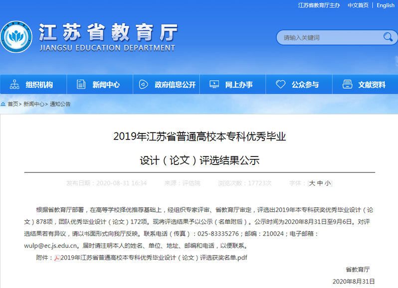 近日,江苏省教育厅公布了2019年江苏省普通高校本专科优秀毕业设计(论文)评选结果,我院报送的2项个人毕业设计和1项团队毕业设计全部榜上有名,共获优秀毕业设计个人二等奖1项,三等奖1项,优秀团队毕业设计1项。
