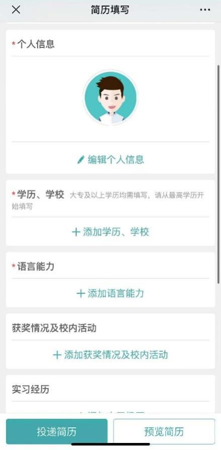 3、 填写并投递简历