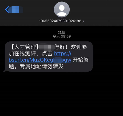 6、根据短信提示完成在线测评