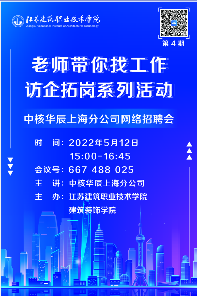 为全面深化校企合作、促进毕业生高质量就业2022年5月12日15:00bv1946伟德官网开展了第四期“老师带你找工作”即访企拓岗线上招聘活动,此次招聘的企业是中核华晨上海分公司。建筑装饰公司党总支书记娄志刚、就业辅导员胡晓爽参加了此次招聘会。