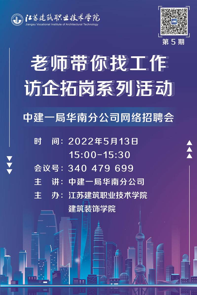 5月13日15:00bv1946伟德官网开展了第五期“老师带你找工作”即访企拓岗线上招聘活动,此次招聘的企业是中建一局华南分公司。bv1946伟德官网经理沈士德教授,装饰公司党总支书记娄志刚、就业辅导员胡晓爽参加了此次招聘会。