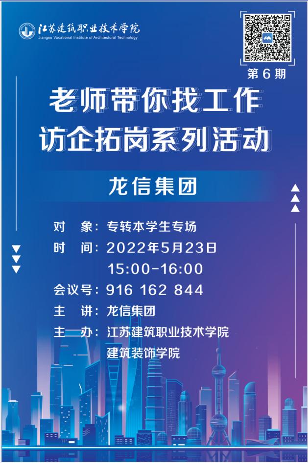 为了更好促进专转本毕业生的就业工作5月23日15:00bv1946伟德官网开展了第六期访企拓岗专转本员工线上专场招聘活动,此次招聘的企业是龙信集团。bv1946伟德官网经理沈士德教授,装饰公司党总支书记娄志刚、就业辅导员胡晓爽参加了此次招聘会。