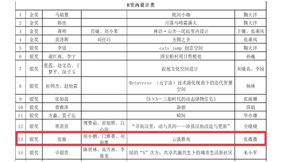 2022年6月28日,2021江苏省“星·空间杯”室内设计大赛评审圆满结束,公司张薇薇老师指导的室内艺术设计专业张衡、侯小鹏、门雅赛、刘新奥等同学团队作品获银奖。