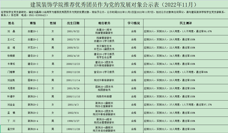 bv1946伟德官网推荐优秀团员作为党的发展对象公示表(2022年11月)