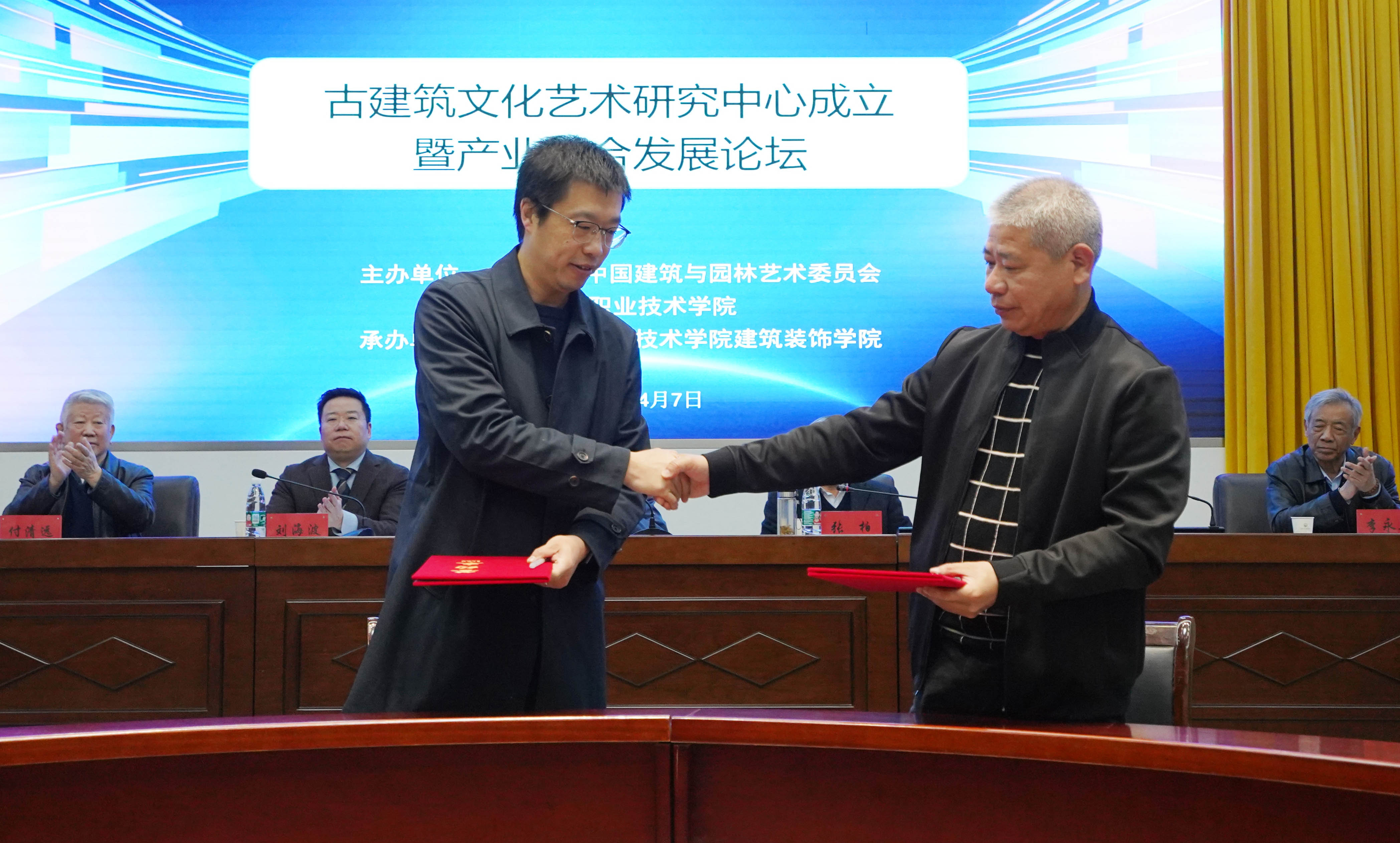 2023年4月7日上午,公司与中国民协中国建筑与园林艺术委员会共同主办的“古建筑文化艺术研究中心成立暨产业融合发展论坛”在学术报告厅隆重举行。副董事长刘海波、蒋兆峰,国家文物局原党组副书记、副局长张柏,中国民协中国建筑与园林艺术委员会会长罗杨,故宫博物院修缮中心主任李永革,著名古建筑专家刘大可、周燕屏、古建筑园林企业专家以及公司领导和古建园林专业相关师生参加活动。此次活动包括古建筑文化艺术研究中心揭牌仪式、古建筑文化艺术学术讲坛、古建筑产业融合发展论坛三个部分。活动由公司党总支书记娄志刚主持。
