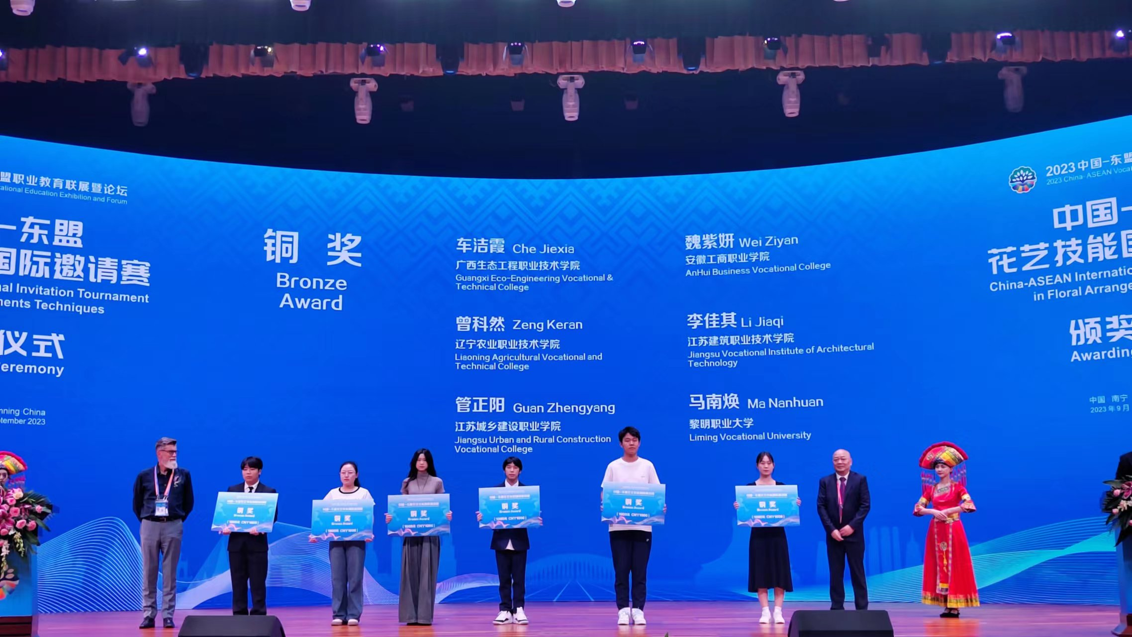 9月15日,由全国住房和城乡建设职业公司产品指导委员会指导,广西壮族自治区教育厅主办,广西建设职业技术公司承办的2023中国—东盟花艺技能国际邀请赛圆满落幕,来自中国和东盟国家的13支参赛队的19名参赛选手参加了本次竞赛。经过激烈角逐,公司bv1946伟德官网的参赛选手李佳其(指导老师:申雯雯)荣获铜奖。