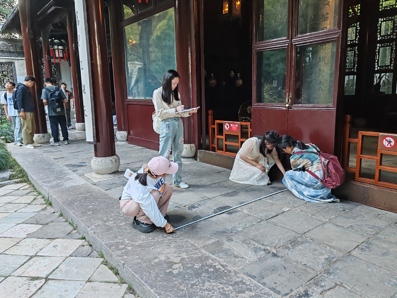 考察期间,同学们测绘了鉴真纪念馆、何园楠木大厅、个园宜雨轩、抱山楼、丛书楼等代表性古建筑,收集了古建筑营造数据,考察了扬州古建筑的木作、瓦石作、油漆彩画作以及木雕砖雕等做法,感受了极具特色的扬州园林造景手法,了解了东关街历史文化街区保护及利用方法和大运河文化,研究了古建筑功能组织与建筑造型之间的关系,并通过摄影、视频和速写等方式收集了专业素材,切身体会了博大精深的中国古代建筑文化。回校后,同学们认真完成了专业考察汇报,圆满完成教学任务。
