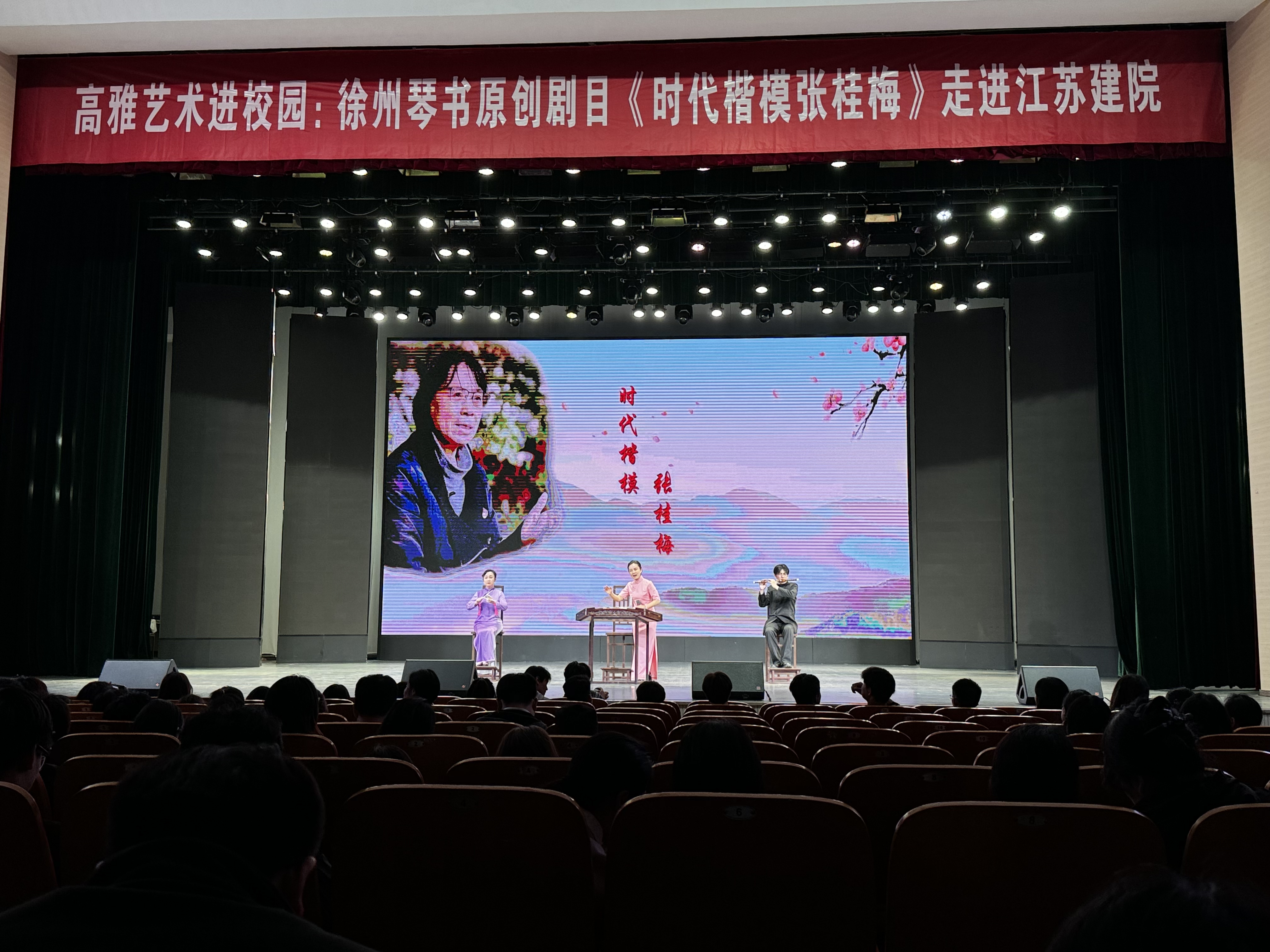 张桂梅是全国“时代楷模”、“全国先进工作者”、“全国十佳师德标兵”、“中国十大教育年度人”、“全国道德模范”等荣誉称号获得者,被党中央授予七一勋章,是优秀人民教师的代表,她的典型事迹感染着当代每一个教育工作者。作品由《病痛无情人有情》《十万公里家访路》《红土高原一枝梅》三回书目组成,讲述张桂梅到华坪县民族中学任教后,历经磨难创办女高,在理想与现实的矛盾冲突中、在平凡岗位中做出的不平凡事迹。宣传张桂梅精神、传扬张桂梅事迹是最好的师德教育内容,将张桂梅模范事迹用徐州琴书这一国家级非物质文化遗产艺术形式进行表现,为传统艺术形式赋予时代精神和内涵。师生们通过观看演出的形式进行情景学习,深刻感受到了中华优秀传统文化的文化魅力和伟大教育家精神的感染力,纷纷致敬教育“燃灯者”。