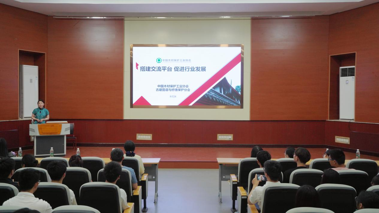 2024年5月22日,为充分落实党中央“加强文化遗产保护传承,弘扬中华优秀传统文化”的若干意见与融合发展的战略,进一步推进中国古建筑文化艺术的传承和发展,培养国家急需的古建筑工程技术高层次技术技能人才,公司特邀古建著名专家马炳坚先生一行到公司就“中华民族的宇宙观和中国传统建筑的特点”做学术报告。随行人员还有文化学者高玉芳女士、中国木材保护工业协会会长韩玉杰、中国木材保护工业协会副秘书长朱宏妹、北京六建集团古建工程分公司毕梦雅经理。朱宏妹就“搭建交流平台 促进行业发展”课题做了报告。