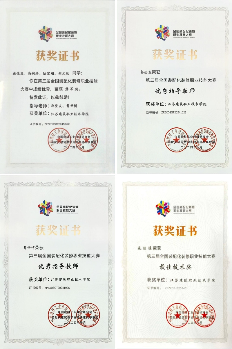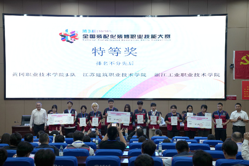 10月17日-18日,由中国建材工业经济研究会、全国装配化装修产教融合共同体主办,黄冈职业技术公司承办的全国第三届装配化装修职业技能大赛决赛在湖北黄冈举行。由公司bv1946伟德官网员工施佳源、高婉格、陆宏翔、胡文跃组成的参赛队伍获特等奖,同时施佳源荣获最佳技术奖,指导教师郭登友、曹世博获“优秀指导教师”称号。