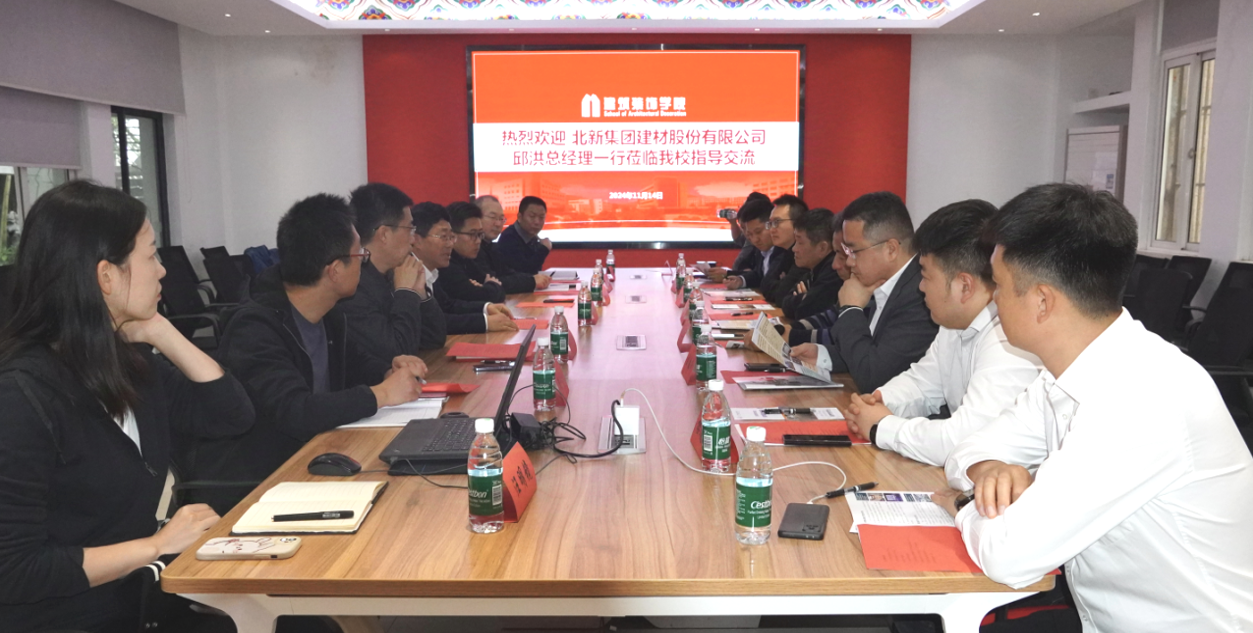 11月14日下午,北新集团建材股份有限公司副总经理邱洪、北新建材龙牌集团副总经理周小磊、北新建材龙牌集团总经理助理刘国新、北新建材龙牌集团总经理助理兼华东公司总经理李佳宇、北新建材龙牌集团南方公司总经理楼凌斌、北新建材龙牌集团产品技术总监刘智彬一行六人来校开展装配化装修人才培养调研交流,中国建材工业经济研究会培训主任罗威、山东百库教育科技有限公司平台运营经理刘灿参加调研;董事长沈士德,公司党总支书记娄志刚、经理袁涛、副经理翟胜增、装饰专业群带头人孙亚峰、专业主任汪明镜及相关专业教师参与交流。