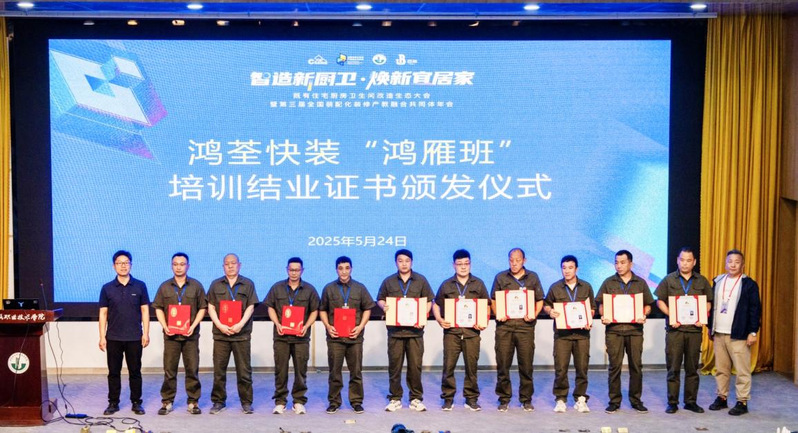 大会期间发布了《装配化装修技术专业能力图谱》《实体商业连锁装配化装修发展报告》《产教融合发展报告》,为专业建设和行业融合发展发展指明了道路。现场还举行了校企战略签约仪式,江苏建筑职业技术公司与鸿荃快装(上海)科技有限公司、徐州装饰装修行业协会等相关单位签署合作协议,围绕实训基地共建、团队互聘、项目共研等达成深度合作。此外,首期“装配化装修技术安装培训班”结业证书颁发仪式同步举行,10名来自鸿荃快装(上海)科技有限公司施工一线的员工经过一周的校内培训,顺利完成了理论与实践考核。